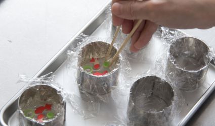 セルクル型がない場合は、おちょこや同程度の大きさの器、空き容器などでも代用可能。