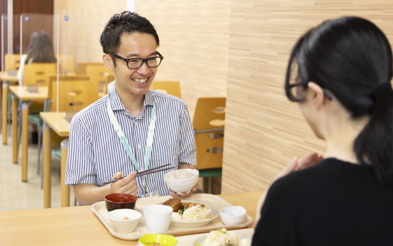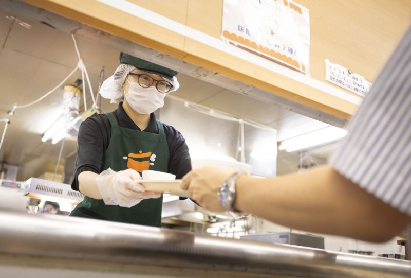 手間暇はかかりますが、手作りのおいしさを伝えたい、作りたてを直接手渡したいという想いから。“作る人と食べる人の顔がお互いに見える”ことを大切にしている食堂です。満足そうに平らげて「午後も仕事をがんばろう!」と出ていく姿を見るのが、調理スタッフにとって何よりうれしいとか。