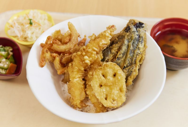 愛知県内の農家で生産された野菜を使った「あいち野菜天丼」。名古屋市産の野菜が揃う時は「なごやさい天丼」と銘打ちます。このメニューに限らず、野菜はできる限り地産地消を心がけて仕入れています。鮮度が高いうえ、輸送による環境負荷を減らしたいという想いからです。