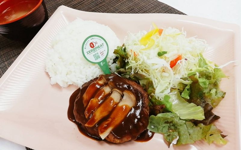 肉の代わりに大豆ミートを使うメニューも積極的に打ち出しています。大豆ミートは良質なたんぱく源であり、原料の大豆は比較的少ない水と肥料で栽培できるため、環境負荷を減らすことができます。肉とほとんど変わらない味わいだと好評です。