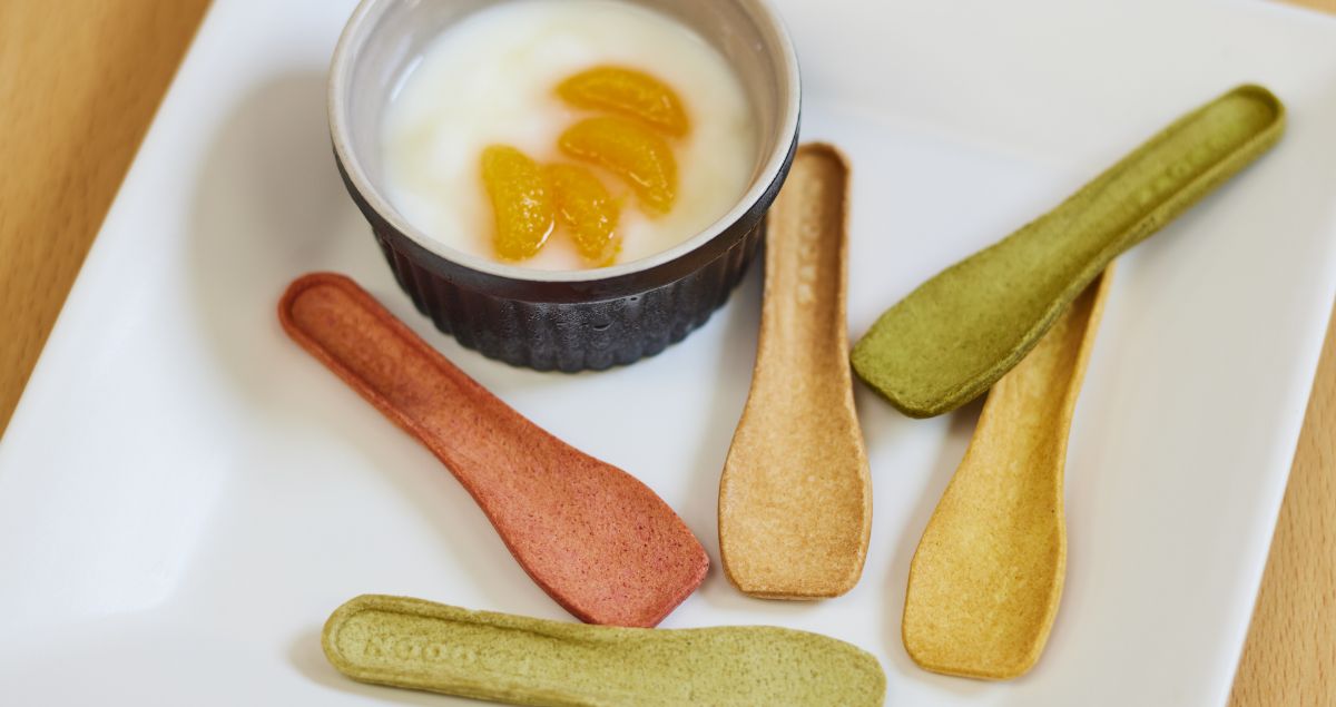 「バランス食堂 IKOTTO」を運営する(株)勤労食は、持続可能なより良い世界を目指すというSDGsの理念に賛同し、食を通したさまざまな取り組みを行っています。地産地消にこだわった仕入れや健康的なメニュー作りに加えて力を入れているのは、食育や食品ロスの削減です。同社が開発した食べられるスプーン「PACOON(パクーン)」は、国産の野菜パウダー、小麦粉、卵で作られたクッキー。野菜嫌いの子どもや大人に興味を持ってもらいたいと、食育目的で生まれたアイデア商品ですが、プラスチックごみ削減を考えるきっかけになるとして環境面からも注目されています。食堂ではイベントセットにデザートが付く時に、添えるスプーンとして時々登場します。