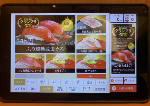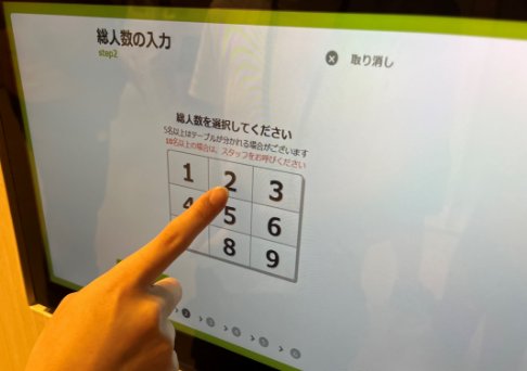 メニュー注文用タッチパネルを業界に先駆けて導入。現在はタッチパネルに表示されるQRタグを読み込むことで、自身のスマホからも注文可能に。