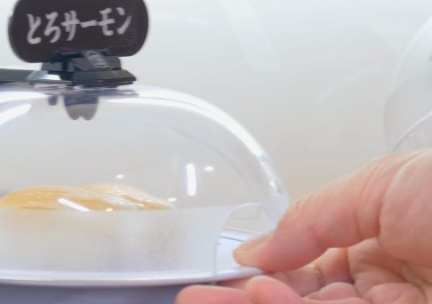 従業員も客も直接触れずに商品を出し入れできるカバーを独自開発。鮮度だけでなく、空気中に漂うウイルスや飛沫からお寿司を守ります。