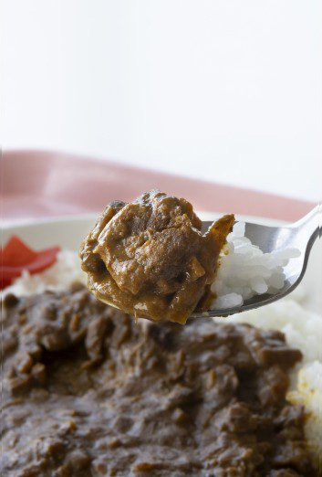 捕獲後、迅速に解体処理されたイノシシ肉は、獣臭さがまったくありません。濃厚なカレーでじっくり煮込んだ肉は柔らかく、旨味に溢れています。