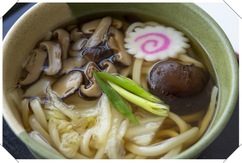 地産地消メニュー。鳥取市の菌興椎茸協同組合が育成した種菌を用いて原木栽培された、香り高いしいたけがふんだんに入っています。出汁ももちろん、しいたけの旨味たっぷり。(450円)