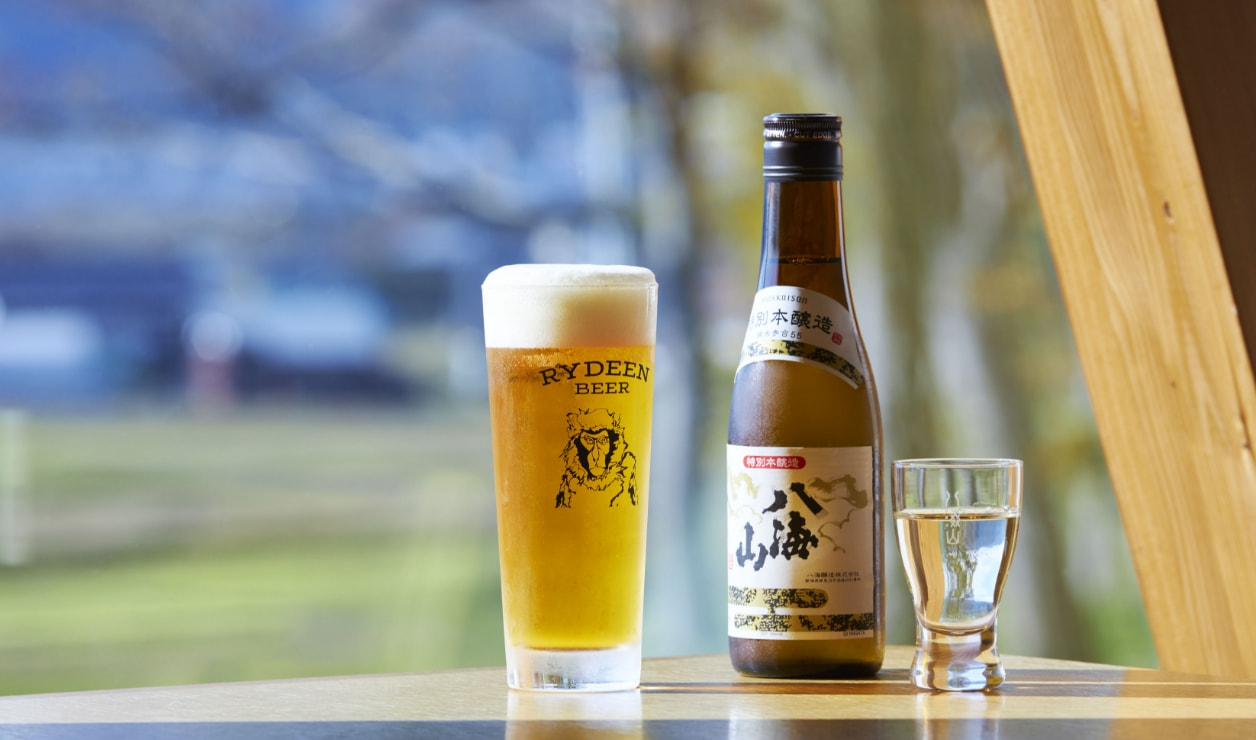 定食と共に注文できるのは「清酒八海山」「特別本醸造八海山」「ライディーンビール(ヴァイツェン/IPA)」。