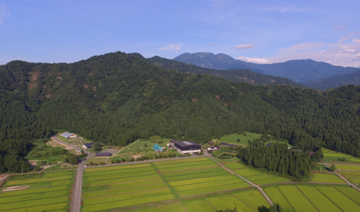 周囲にのどかな田園が広がる「魚沼の里」。郷愁とやすらぎを感じる風景です。
