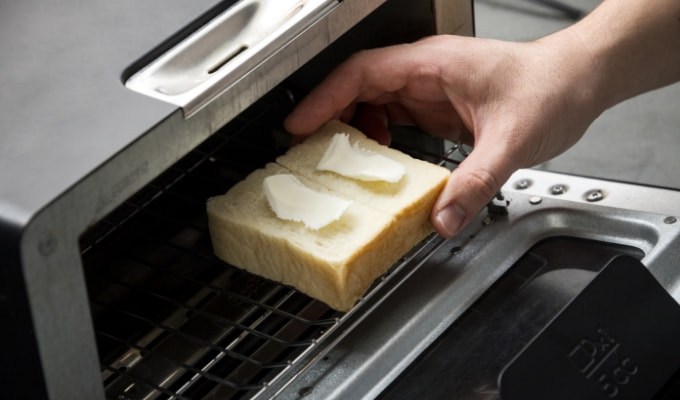 食パンにバターをのせ、トースターで焼き目がつくまで焼く。