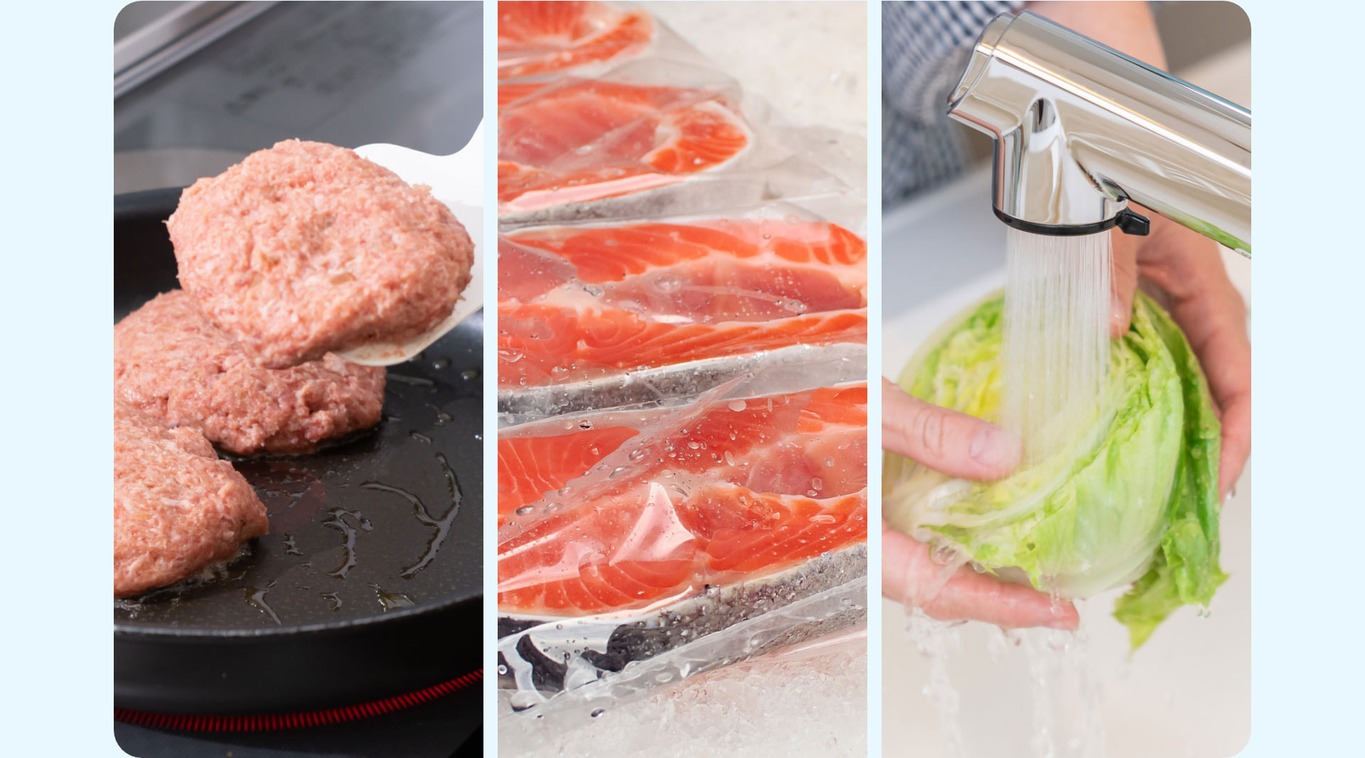 家庭で食中毒を予防するために注意すべきポイントを、肉、魚、野菜と食材ごとにまとめました。安全に食事を楽しむため、家庭でできる対策をご紹介します。