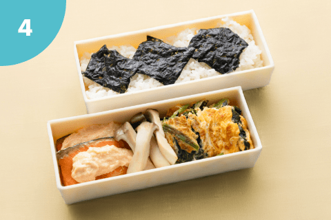 4.調理中 包丁やまな板を使う時は、先に野菜を、後に肉や魚介類を切り、使用後はすぐに洗いましょう。包丁やまな板は野菜用と肉・魚介類用に分けるとより安全です。肉や魚介類、卵を扱った後は必ず手を洗いましょう。食品を加熱する際は、中心までしっかり火を通し、電子レンジ使用時は食品全体に熱が行き渡るようにしましょう。