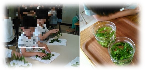 (小学校における茶育の取組事例)茶の植樹から収穫、手揉みまで体験