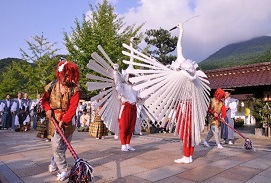 頭屋前(町民センター)で舞う鷺舞神事