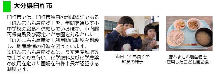 - 通年で、市内全小中学校、全こども園において、「ほんまもん農産物」をはじめとする有機農産物等を使用した給食を提供しています。