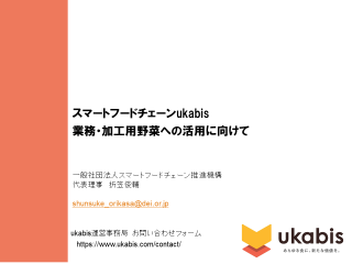 ・ スマートフードチェーンukabis 業務・加工用野菜への活用に向けて