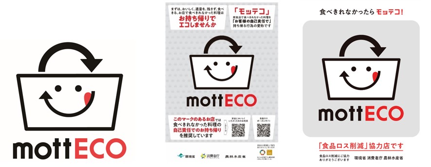 外食時には食べきることが大切ですが、どうしても食べきれない場合については「mottECO(もってこ)」(食べ残しを持ち帰る行為の愛称)を利用者とお店の相互理解のもとで取り組んでいただくことについて推進しております。