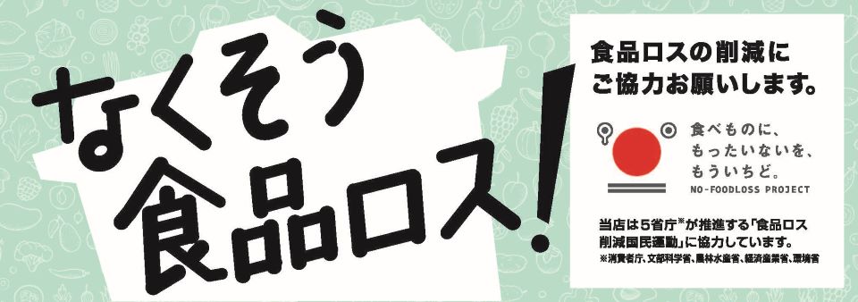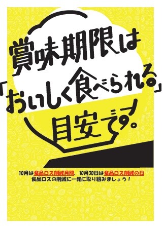 食品ロスの削減の推進に関する法律(令和元年法律第19号)により、10月は「食品ロス削減月間」、10月30日は「食品ロス削減の日」です。