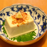 豆乳に「にがり」を加え、かためてつくります。「もめん豆腐」「絹ごし豆腐」などの種類があります