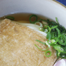 豆腐をうすく切って、油であげたもの。いなり寿司にしたり、そばやうどんにのせて食べたりします