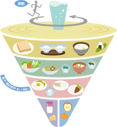 この「食事バランスガイド」のコマのイラストをよくみてみよう。