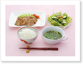 みなさんの食事の栄養バランスはどうですか?最近は脂質(ししつ)のとりすぎで栄養バランスがくずれてきています。日本人が昔から食べてきたごはんを主食としてしっかり食べ、魚や肉、野菜・果物、海藻(かいそう)、豆類などを使った一汁二菜(いちじゅうにさい)という食べ方がバランスの良い食事に近いのです。毎日の食事でごはん食(和食)をみなおしてみませんか。