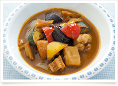 2種類の味噌とだしでコクを出したシチューは、野菜類を煮込む前に揚げておくのがシェフレシピのポイント。