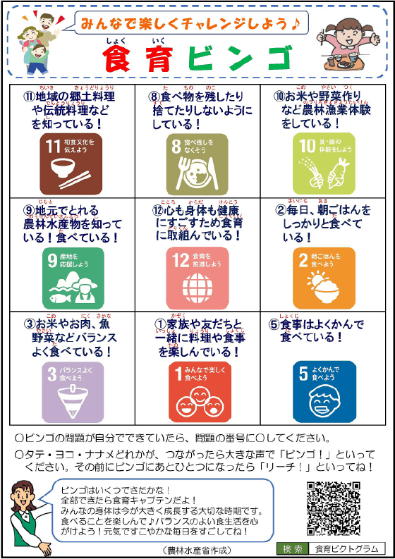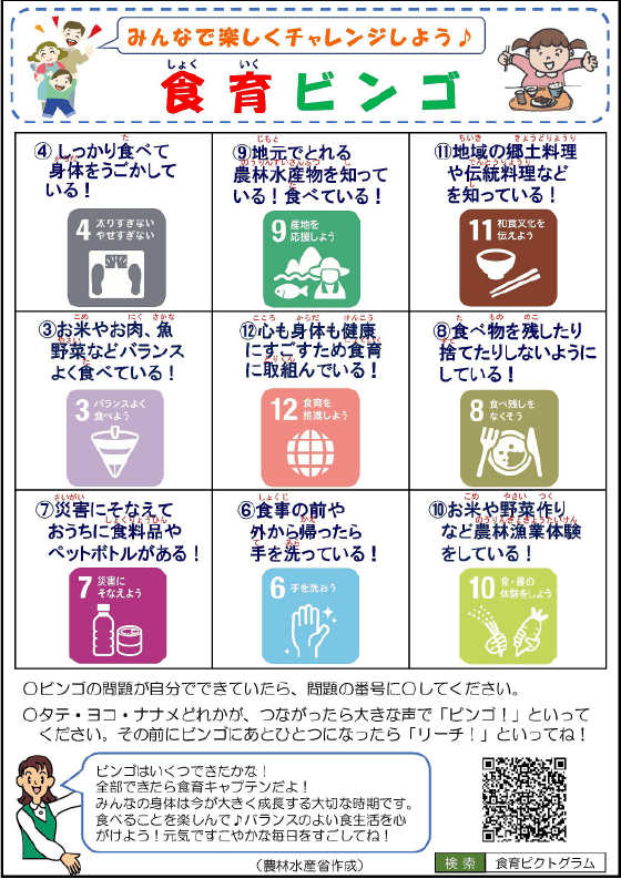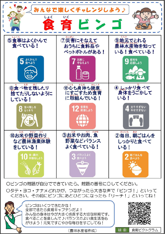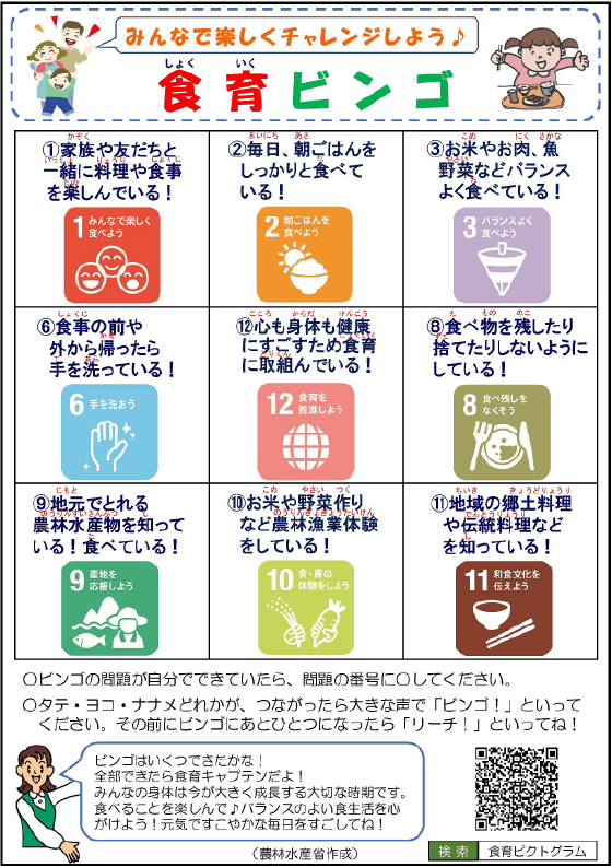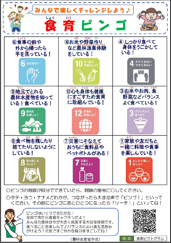 食育ビンゴ(食育ピクトグラム版)にチャレンジしよう!