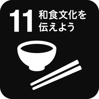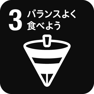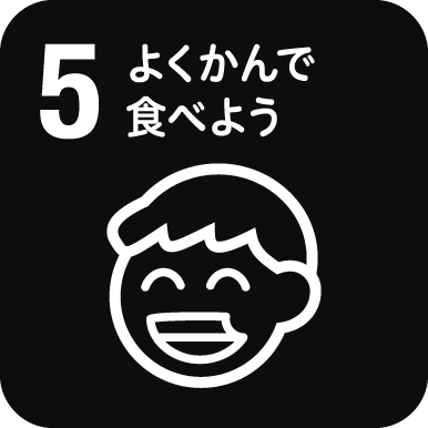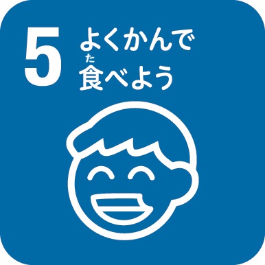 食育の取組をわかりやすく表現し、色については視覚障がい者の方にも判別できるような色としています。また、 SDGsのマークとの併用の際、区別がつくように角に丸みを持たせています。
