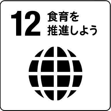 食育マークは、食育ピクトグラムを広く普及・啓発するため「12 食育を推進しよう」を活用したデザインとして、バッジなどの食育の普及啓発に資する物として利用することができます。