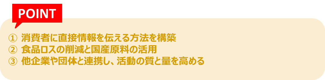 | 食育情報を発信しながら、 他企業や団体とも連携 ![]() |
