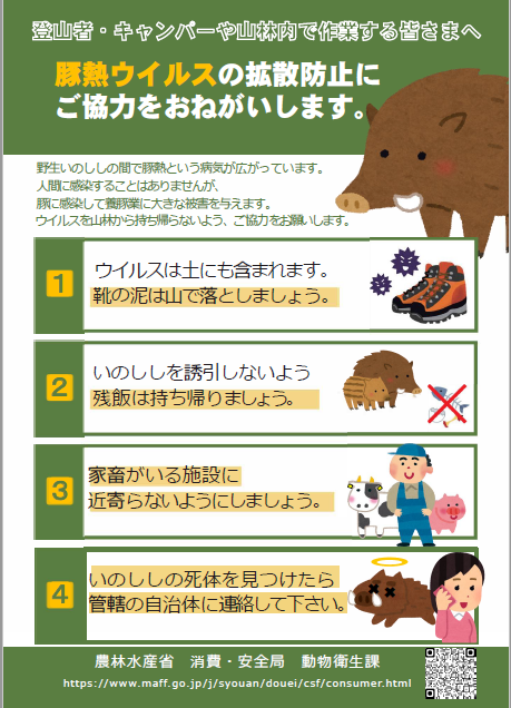豚熱ウイルスの拡散防止注意喚起ポスター