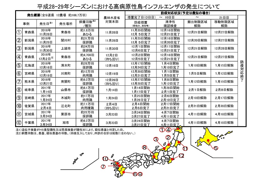 平成28年度高病原性鳥インフルエンザの国内発生事例について