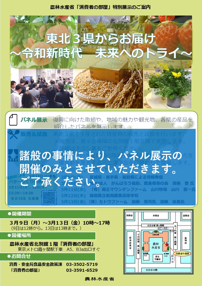 お詫び:当初、「バター作り体験教室」、「東北3県の特産物の販売」、「特別ステージでのミニ講演会」もご案内しておりましたが、諸般の事情によりパネル展示のみの開催とさせていただきます。(令和2年2月27日更新)展示の様子