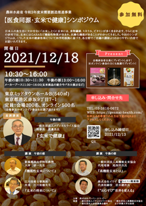 「医食同源・玄米で健康」シンポジウム(令和3年12月18日@東京ミッドタウンホール)について紹介します。