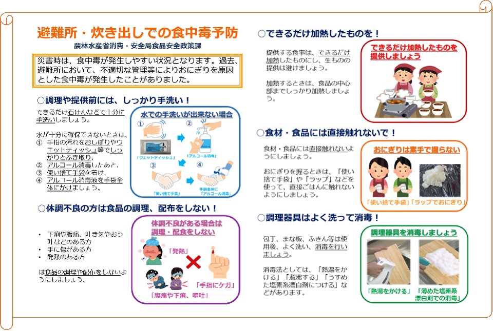 避難所・炊き出しでの食中毒予防(A4サイズ2枚)(PDF : 770KB)