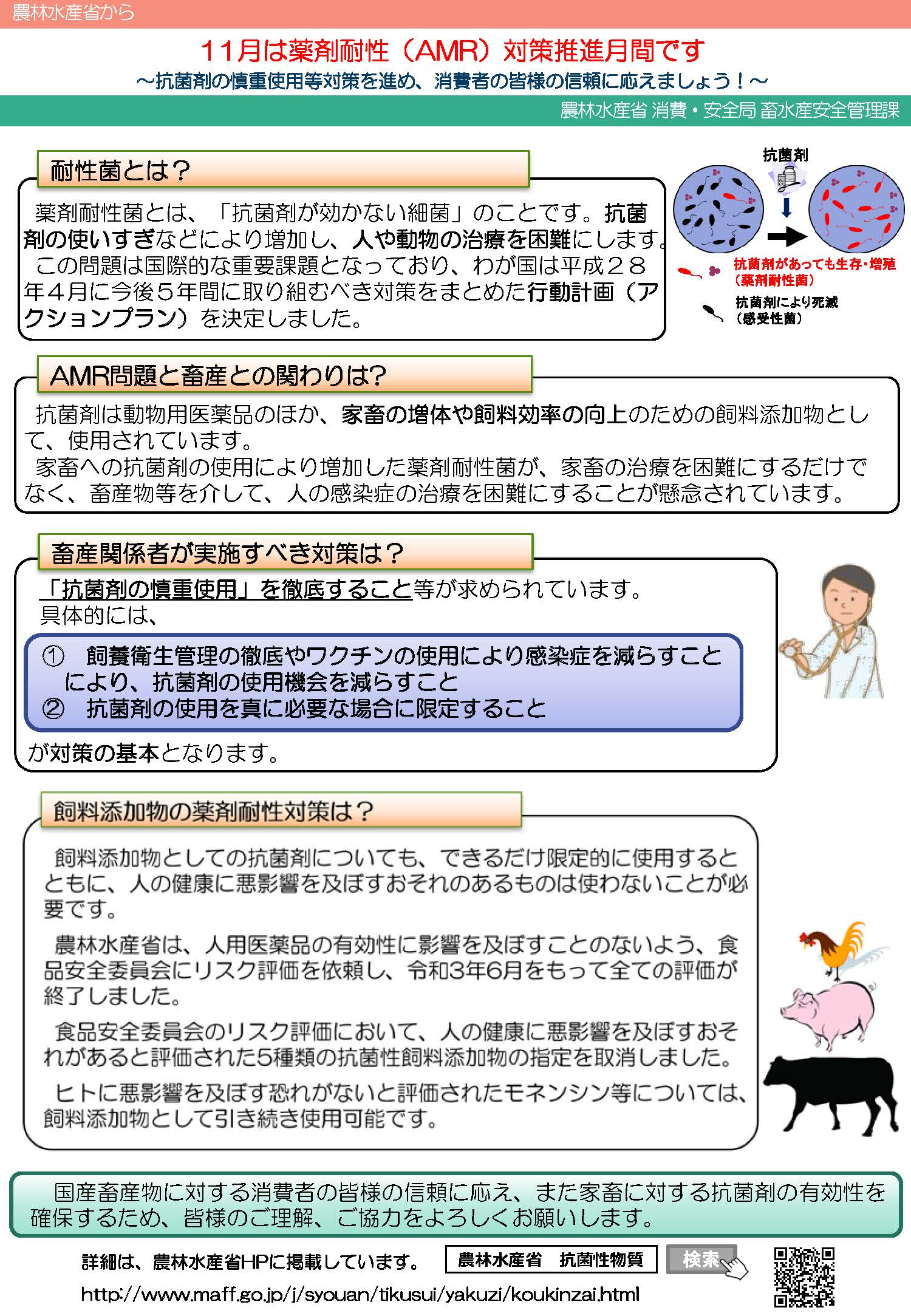 毎月11月を薬剤耐性(AMR)対策推進月間に設定し、国民一人ひとりの主体的な取組を促していくこととしています。