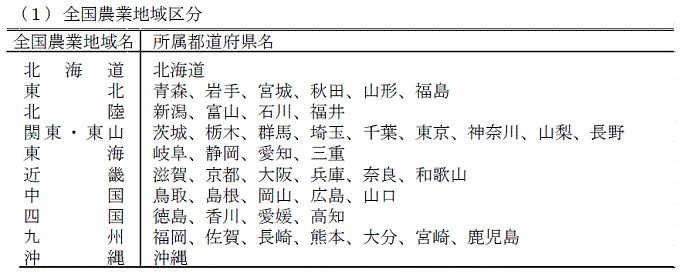 注:東北農政局、北陸農政局、近畿農政局及び九州農政局の結果については、全国農業地域における各地域の結果と同じであることから、統計表章はしていない。 - 統計数値については、表示単位未満を四捨五入したため、合計値と内訳が一致しない場合がある(図表を含む。)。