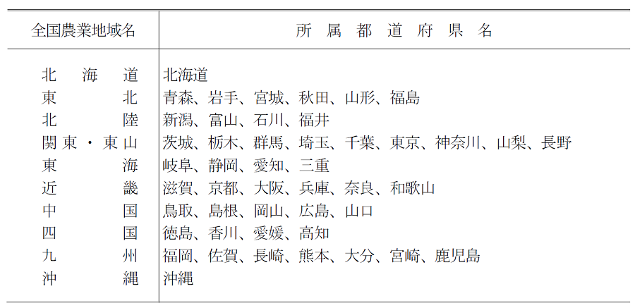 「nc」:計算不能 - 全国農業地域の表章区分は、次のとおりである。