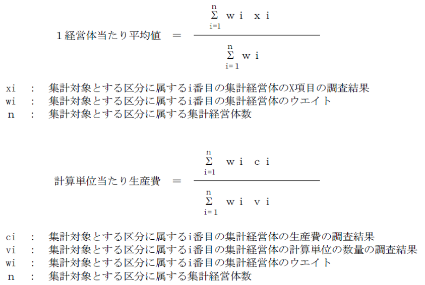 ただし、生産費総額=費用合計+支払利子+支払地代+自己資本利子+自作地地代