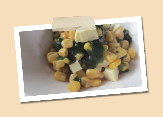 - 乾燥わかめ小さじ2(2g)/スイートコーン缶(ホール)大さじ3/
