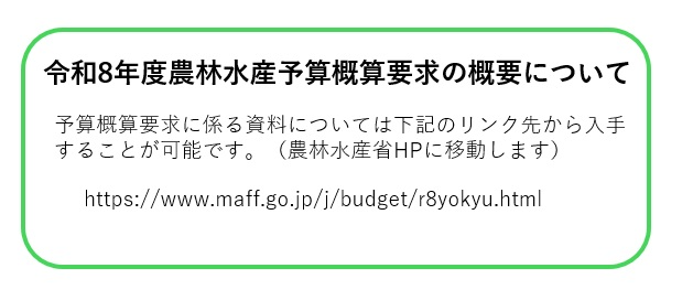 令和8年度の農林水産予算概算要求については、来年度の政策施策推進のため要求するものであり、農林水産省としては、本年策定された新たな食料・農業・農村基本計画やコメをめぐる情勢を踏まえ農業の構造転換を着実に実施し、農業の持続的な発展、食料安全保障の強化政策等を推進してまいります。