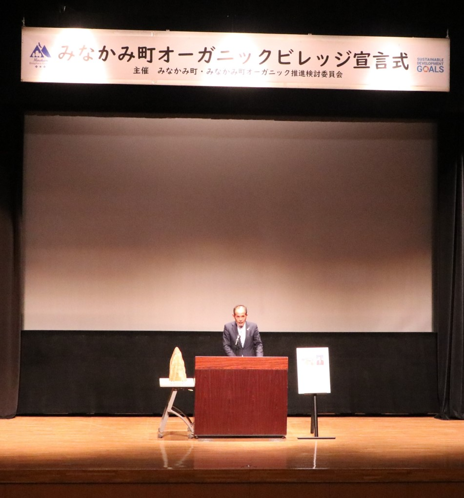 宣言式では、みなかみ町オーガニック推進検討委員会の茂木委員長から挨拶と併せて「みなかみスタイル」による農業環境プラン等の説明、みなかみ町農林課から有機農業実施計画の概要説明、阿部町長によるオーガニックビレッジ宣言書が読み上げられました。また、有機農業者3名から令和7年度の取組への抱負が述べられました。