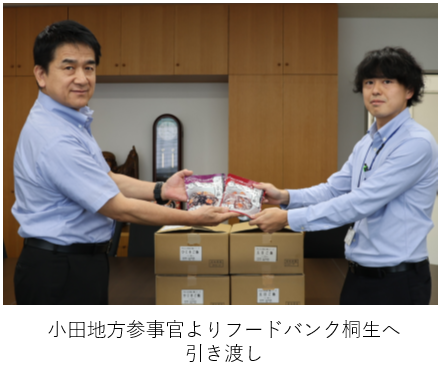 令和7年6月17日、災害用備蓄食品として関東農政局群馬県拠点で保管していたレトルト食品について、小田地方参事官から桐生市にあるフードバンク桐生へ引き渡しました。