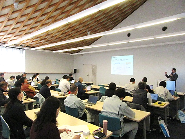 当日は、教員を含む24名が参加され、モニターに映し出された資料を見ながら講師の説明に真剣に耳を傾けていました。学生からは、生産者目線での米価格の推移などについて質問があり、井田主任が丁寧に応答しました。
