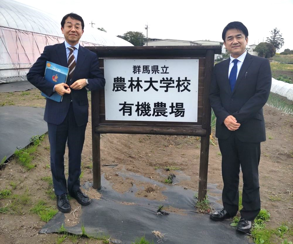 令和7年4月22日群馬県立農林大学校を訪問し砂盃 徹校長との意見交換および、農林大学校の農業施設や生徒の実習風景などを視察しました。