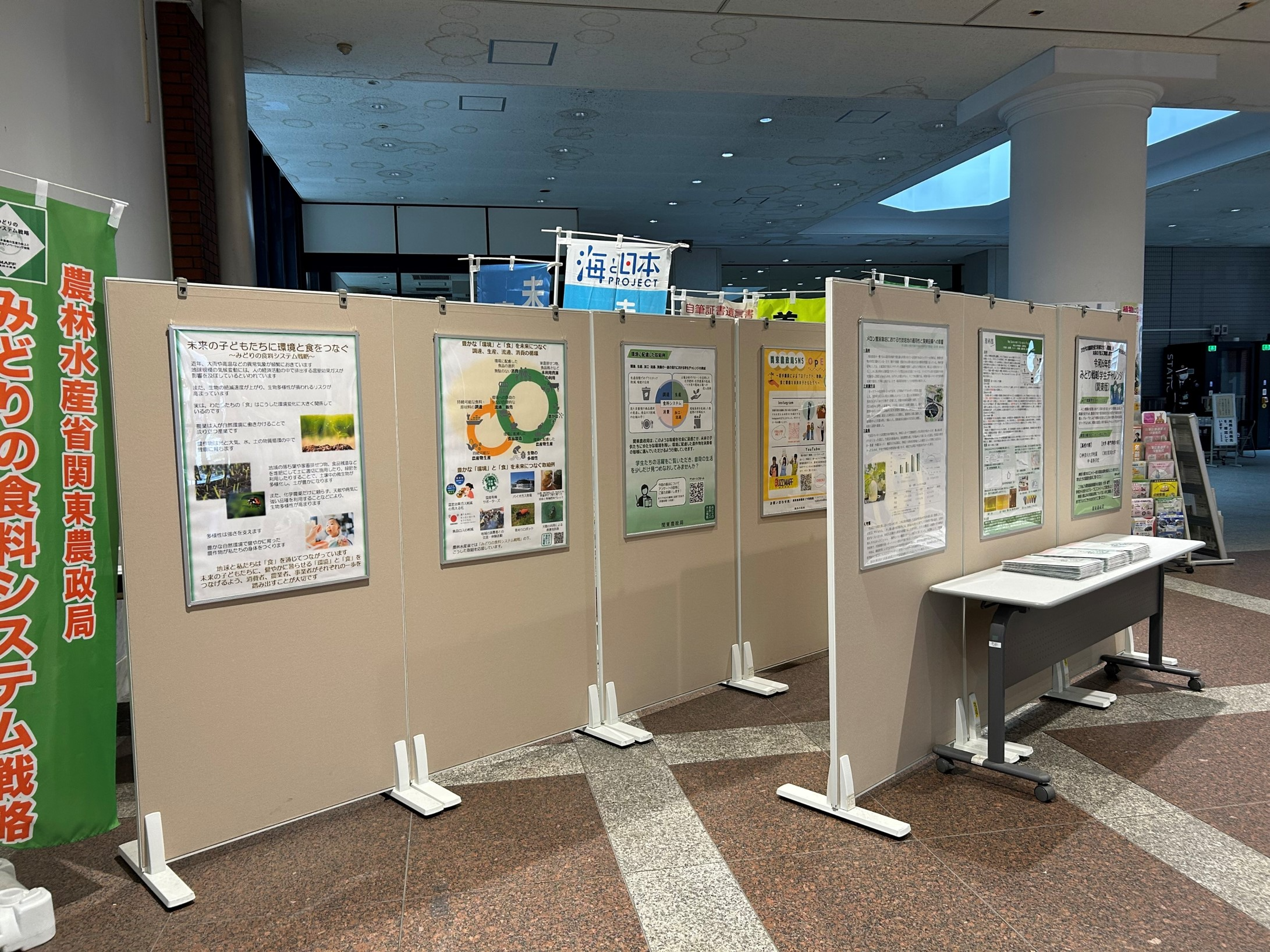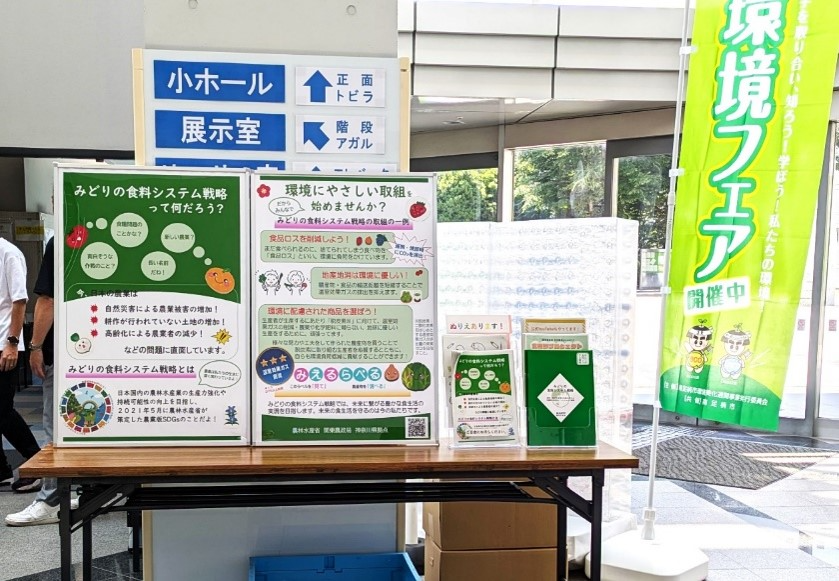 さらに、会館内ロビーにみどりの食料システム戦略に関するパネル展示、パンフレット等の配付を行いました。