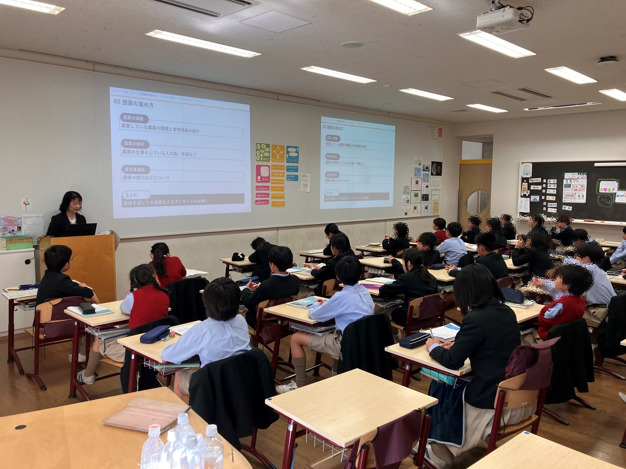 当拠点は、洗足学園小学校の4年生に対し、出前授業を行いました。授業の中では、日本の農業が直面する様々な課題について触れつつ、当省が保有している統計データを活用して農業者の減少・高齢化の現状についても学習しました。