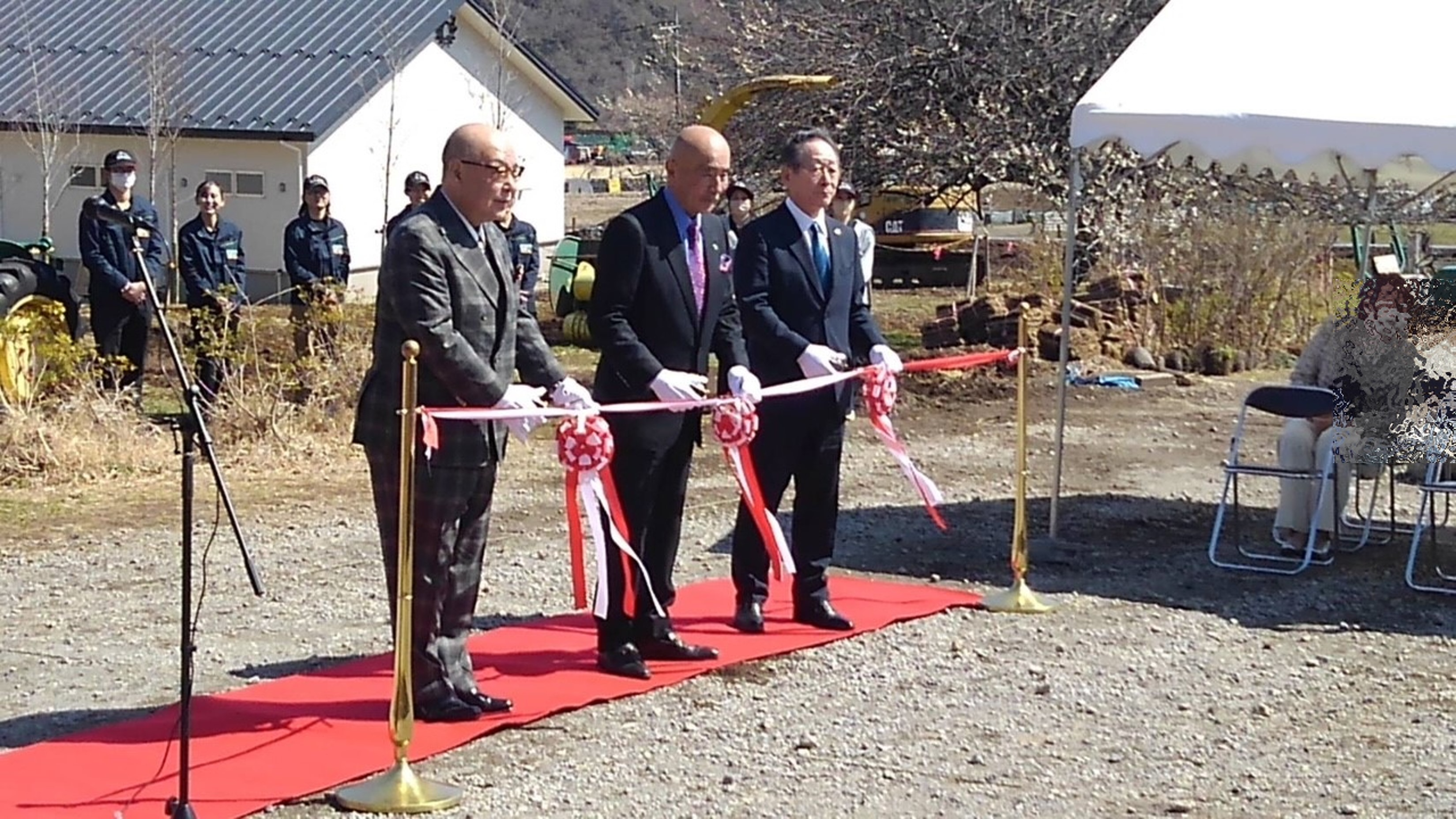 当拠点は、総合化事業計画認定事業の関連施設である服部牧場のチーズ工房完成を記念して開催されたオープニングセレモニーに参加し、祝辞を述べるとともに、服部 代表取締役、小野澤 愛川町長とテープカットを行いました。