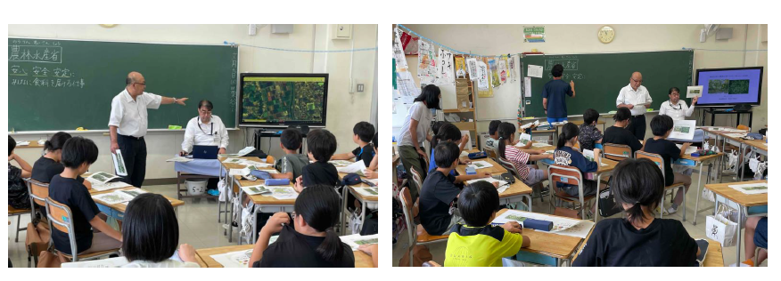 授業に参加した児童からは、「バラバラの場所にある畑をどのように一か所に集めて耕作できるようにするのか?」「賞味期限を過ぎた食べ物は食べても大丈夫なのか?」などの質問があり、農業や食品ロス削減が食料自給率アップに繋がることに、興味を持ってもらえた様子が伺えました。