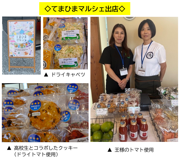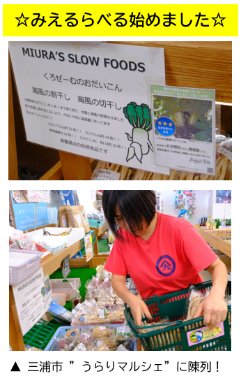 当日は “みえるらべる” を貼付した「乾燥野菜」「トマトジュース」の他、地元、神奈川県立三浦初声高等学校和田キャンパスの生徒と共同制作した「ドライトマトとオートミールクッキー」(米粉使用)の販売も行いました。