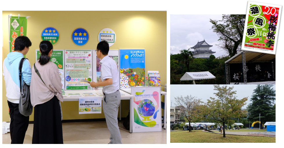 国際医療福祉大学小田原キャンパス大学祭で神奈川県拠点のブースを設置し、「農福連携」、「みどりの食料システム戦略」及び「GREEN×EXPO 2027」のパネル展示と資料の配布を行いました。